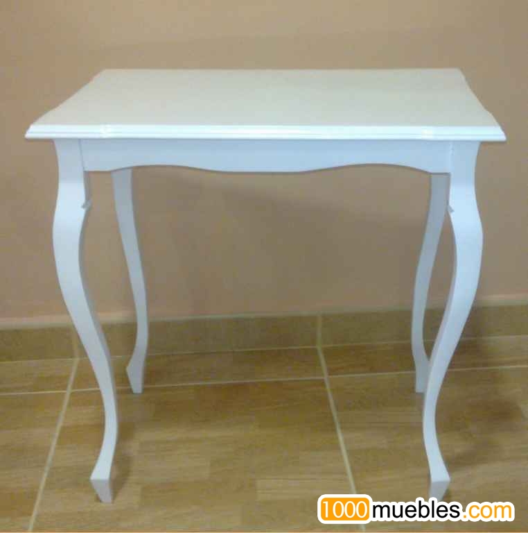 Mesa auxiliar en madera con 4 patas curvas, lacada en blanco. 56cm ancho x 56cm alto x 38cm fondo. ANTES: 136€ ARTÍCULO NUEVO, DE EXPOSICIÓN